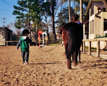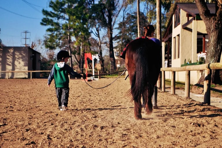 Para los más pequeños ofrecemos clases en Pony con una duración aproximada de 30 minutos, enfocadas en la diversión y el aprendizaje, como inicio e introdución a la equitación, brindándoles un entorno seguro y cuidado en cada clases.